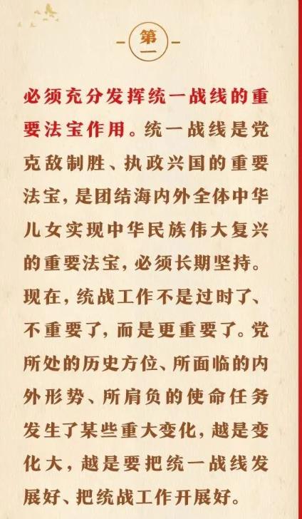 1月16日出版的第2期《求是》雜志刊發(fā)習近平總書記重要文章《完整、準確、全面貫徹落實關(guān)于做好新時代黨的統(tǒng)一戰(zhàn)線工作的重要思想》。在這篇重要文章中,習近平總書記充分肯定我們黨百年統(tǒng)戰(zhàn)的歷史性貢獻和新時代統(tǒng)戰(zhàn)工作取得的歷史性成就,用“十二個必須”對關(guān)于做好新時代黨的統(tǒng)一戰(zhàn)線工作的重要思想作出概括,強調(diào)關(guān)于做好新時代黨的統(tǒng)一戰(zhàn)線工作的重要思想,是黨的統(tǒng)一戰(zhàn)線百年發(fā)展史的智慧結(jié)晶,是新時代統(tǒng)戰(zhàn)工作的根本指針,全黨必須完整、準確、全面貫徹落實。